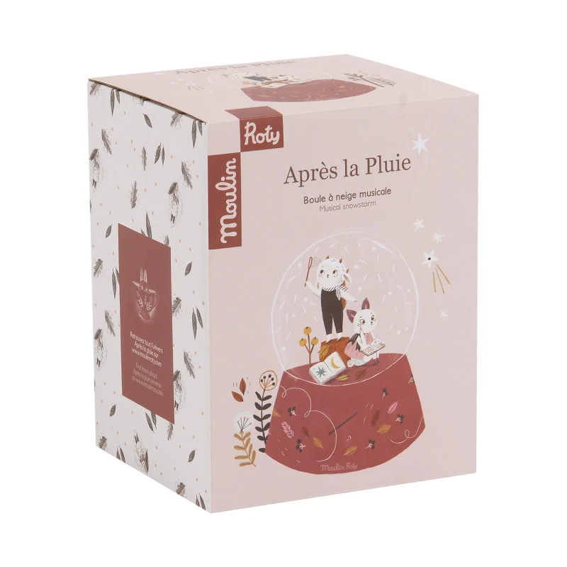 La collection Après la pluie de Moulin Roty propose à votre bout de chou un monde féerique, peuplé de personnages oniriques imaginés par l’illustratrice Lucille Michieli et d’objets décoratifs originaux, comme cette boule à neige musicale Moulin Roty Après la pluie. Portée par des couleurs et des matières naturelles, cette jolie gamme remplit l’environnement de votre enfant de douceur et de charme, dans sa chambre comme à l’extérieur, et insère beaucoup de poésie dans ses moments de détente ou de repos