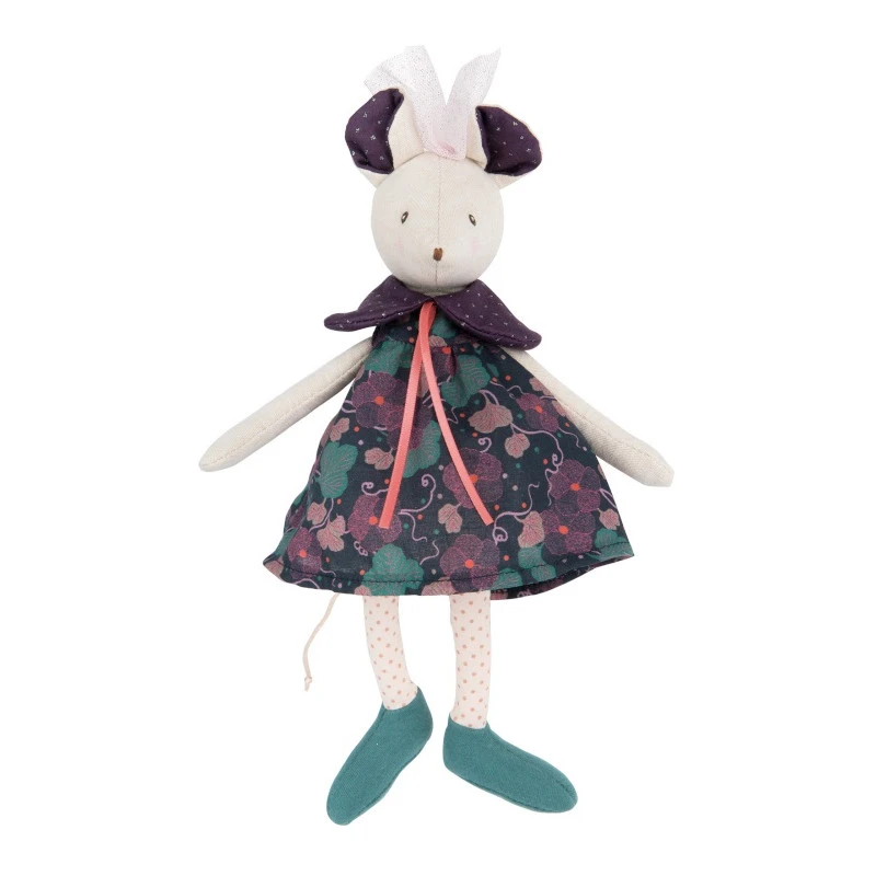 Sissi la souris est l’un des adorables personnages du thème Il Etait Une Fois de Moulin Roty. Vêtue d’un petit nœud rose en tulle et d’une robe violette à fleurs, elle adore écouter et raconter des histoires. Ses grandes pattes la rendent facile à saisir, ce qui va plaire à bébé ! Elle mérite sa place sur votre liste de naissance ! Votre petite fille pourra jouer avec elle, la câliner, lui parler… Sa douceur est réconfortante et calme les chagrins. Sissi la souris « Il était une fois » trouvera vite sa place dans la famille ! C’est une excellente idée de cadeau de naissance.