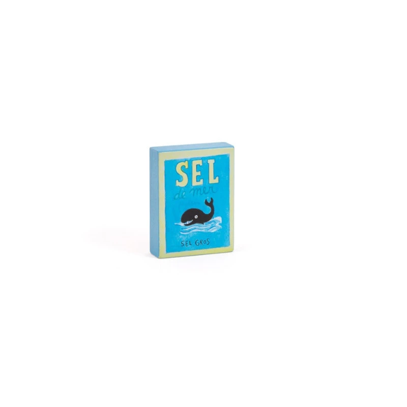 Aujourd’hui, c’est jour de courses ! Aussi, Moulin Roty a réuni dans ce set de délicieux produits d’épicerie : du chocolat, des pâtes, des biscottes, du sel, une boîte de sardines, des biscuits… Ils sont tous réalisés en bois, regroupés dans une ravissante caissette, et ils ressemblent à s’y méprendre aux vrais emballages !
